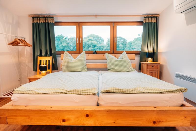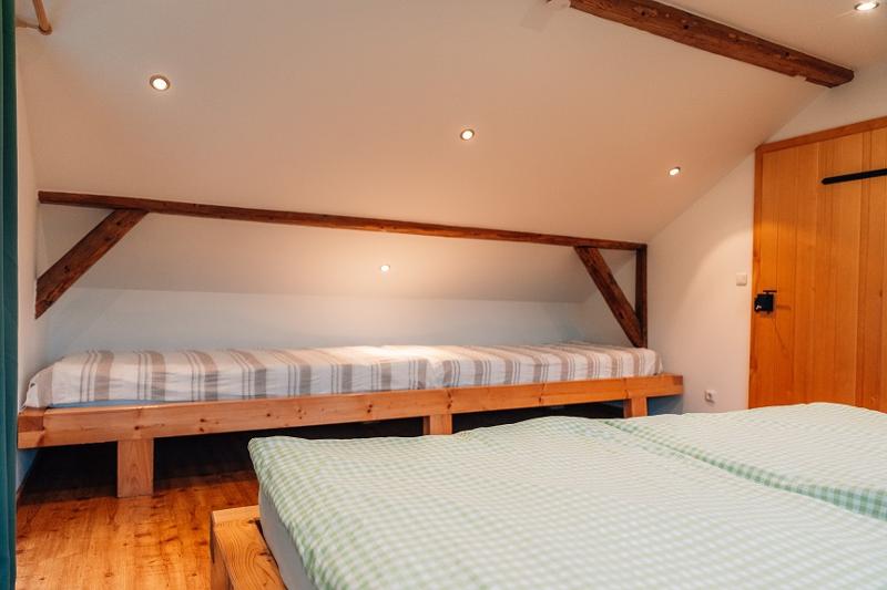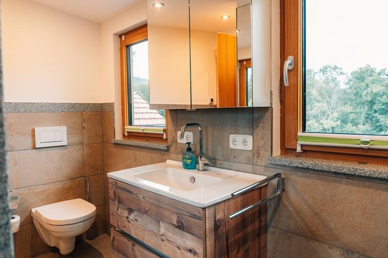 ... Direkt vor der Haustür ist Ihr eigener Schlittenhang und Startpunkt für Schneeschuh Ausflüge. Ein Paradies für Familien Biker und Wanderer, oder auch nur welche, die absolute Ruhe brauchen! Am Fuß des Pröllers gelegen, haben Sie im Winter das perfekte Skigebiet vor der Haustüre. In ca. 30 Minuten sind Sie am großen Arber oder in Tschechien. Das Woidhaus liegt am Ende einer Privatstraße und ist bis zum nächsten öffentlichen Weg sind es ca. 800 m. Also ideal für Familien mit Kindern, die Freiraum brauchen oder auch solchen, die sich nach Ruhe sehnen! Am ca. 5 Gehminuten erreichbaren Weiher kann man die Seele baumeln lassen. Die Fische freuen sich über Futter und lassen sich beim Fressen auch gerne mal zuschauen. In der Nähe ist Grün und St. Englmar. Dort gibt es zwei Freizeitparks, Indoorspielhalle, Museen, Klettergarten, Restaurants, unzählige Wander- und Fahrradrouten. Im nahe gelegen Viechtach kann man gut und günstig einkaufen. Auch der Pfahl mit seinem Klettermöglichkeiten, ein Freibad und Hallenbad befinden sich ebenfalls dort. In ca. 20 km Entfernung erreichen Sie die Pfingstritt Stadt Bad Kötzting wo eine Spielbank und das Erlebnisbad AquaCur nur zwei der vielen Highlights darstellen. Das Woidhaus ist ein altes Bauernhaus, welches wir die letzten Jahre mit viel Liebe zum Detail renoviert haben. Teilweise wurde es auch außen noch im Urzustand gelassen um den Flair zu erhalten. So auch die etwa 200 Jahre alte Scheune. Es besteht aus 3 Stockwerken. Das untere Stockwerk ist noch im Urzustand. Der Mittlere und obere Stock wurde als Wohnbereich komplett neu ausgebaut. Ein Bad mit Regendusche ist nur eine Besonderheit. 2 Schlafräume eines mit Doppelbett, eines mit Doppelbett und Beistellbett sowie eine Wohnküche mit ausziehbarer Couch bietet Platz für bis zu 6 Personen. Im oberen Stockwerk sind ein Balkonzimmer mit 4 Betten und ein Doppelzimmer sowie eine Nasszelle mit Dusche/WC und herrlicher Aussicht ins Grün. Insgesamt haben im Woidhaus 11 Erwachsene bequem Platz. Etwa 5000m² Wiesenflächen umrunden zum Haus und bieten genug Platz zum Toben oder entspannen. Nehmen Sie Platz am großen, gemütlichen Tisch der Wohnküche oder machen Sie es sich auf unserer „Gredbäng“ gemütlich und genießen Sie Ihren Urlaub.