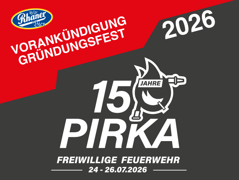 Die Freiwillige Feuerwehr Pirka feiert vom 24. - 26. Juli 2026 ihr 150-jähriges Gründungsfest.